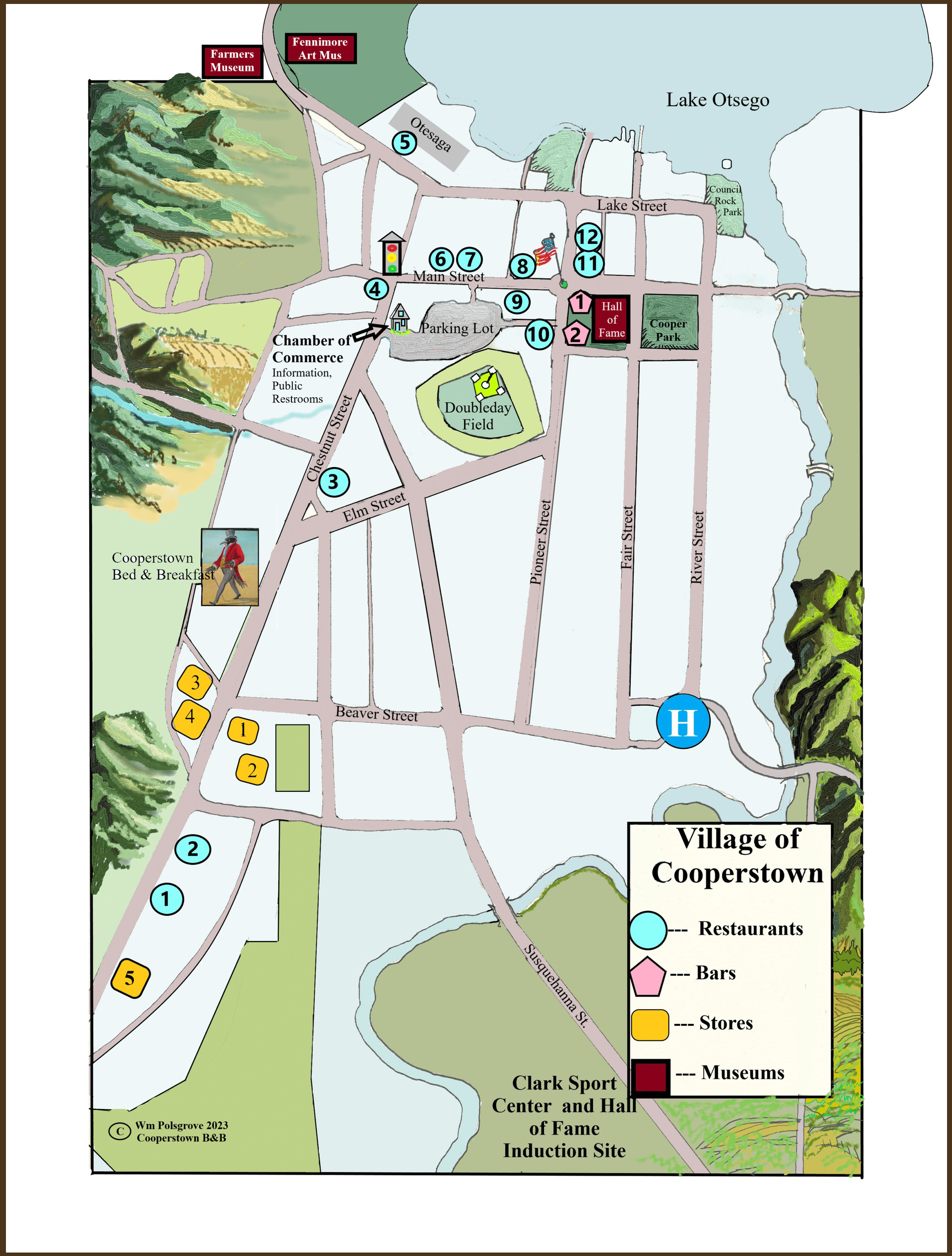 One of the great pleasures of staying at Cooperstown Bed and Breakfast is the ability to explore the village with ease. Located just minutes from Main Street, the inn offers convenient access to many of Cooperstown’s most beloved destinations while providing the quiet charm of a historic residential neighborhood. Guests can stroll to the National Baseball Hall of Fame and Museum, visit Doubleday Field, browse the village’s charming shops, enjoy local restaurants and cafés, or take in the scenic shoreline of Otsego Lake. Visitors may also use the seasonal Cooperstown trolley, which stops directly in front of the house, making it easy to explore the area without a car. Beyond the village, the internationally renowned Glimmerglass Festival is only a short fifteen-minute drive away, placing opera, baseball history, and lake views all within easy reach.